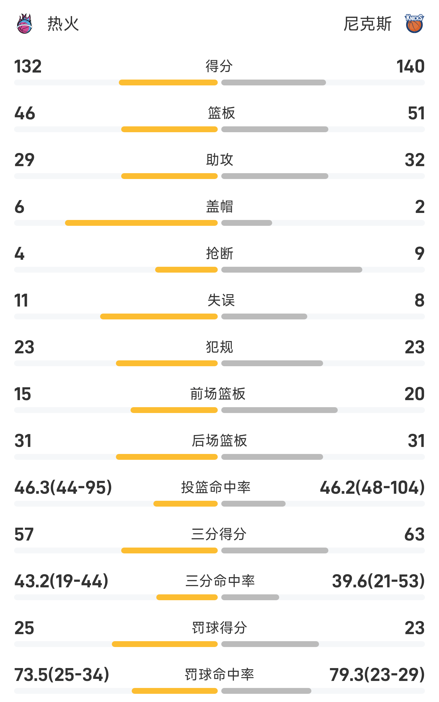 NBA杯战报:唐斯39分11板,尼克斯140-132击败热火