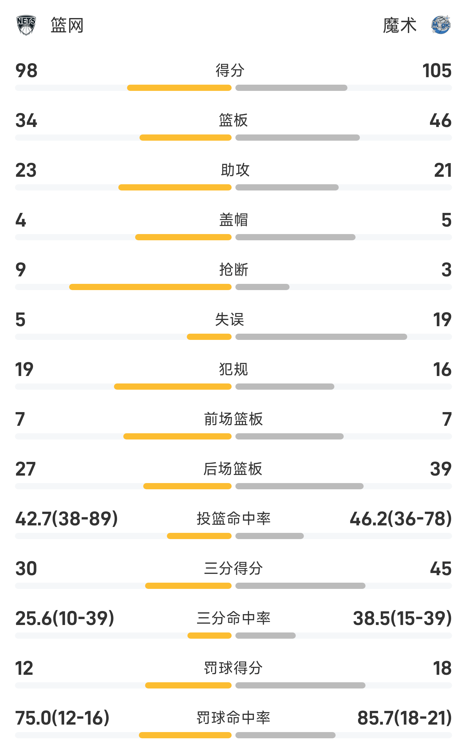 NBA战报:瓦格纳25分6板,魔术105-98击败篮网