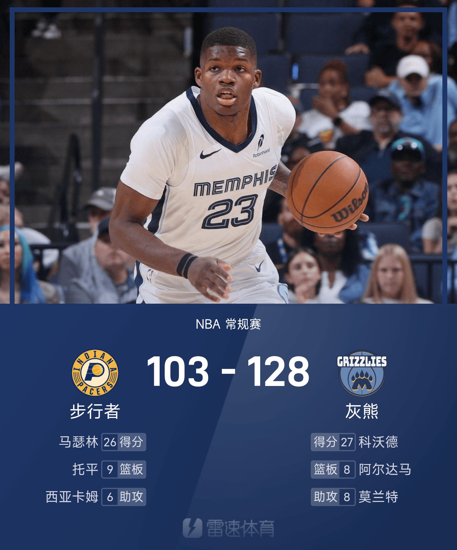 灰熊128-103大胜步行者