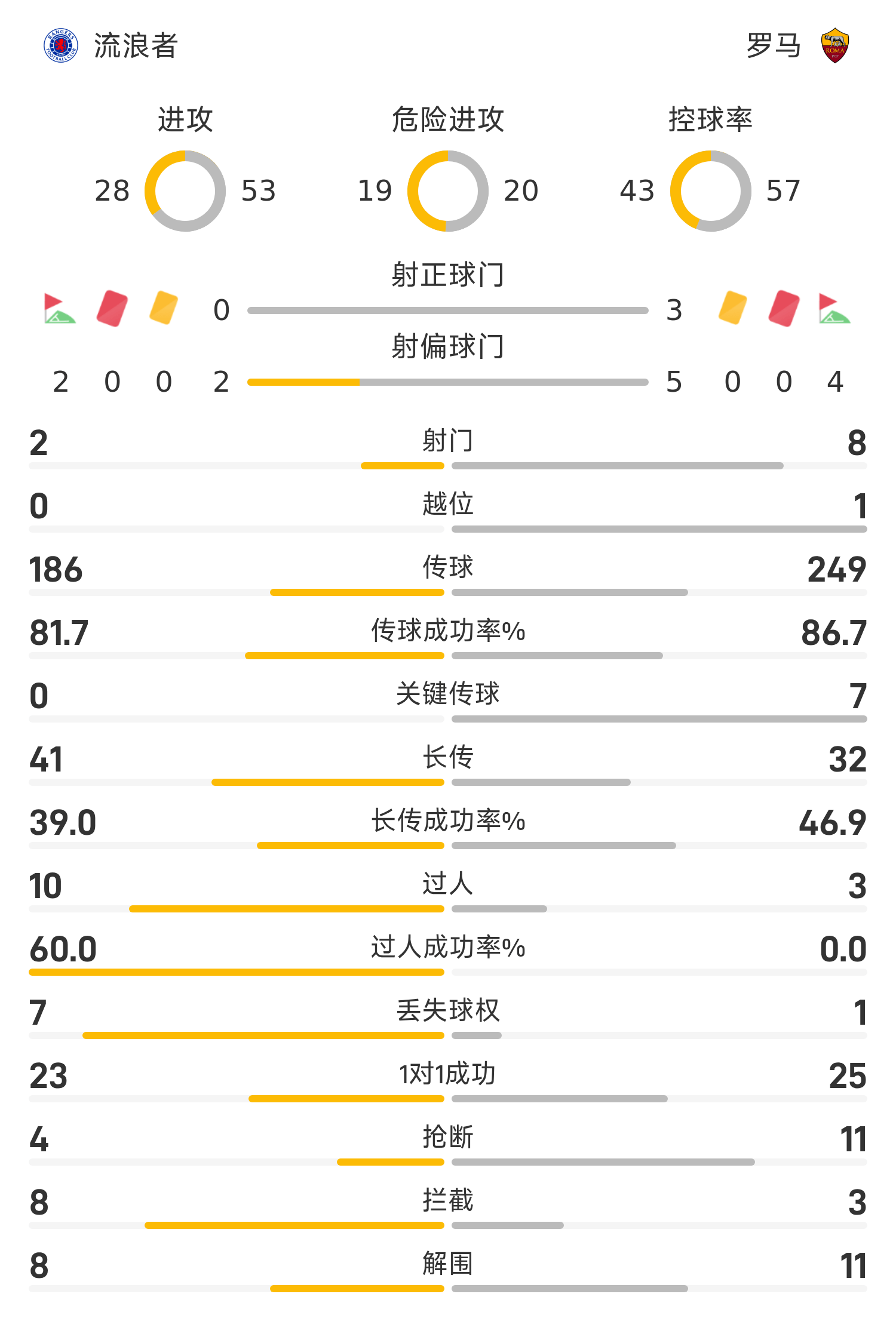 欧联半场:苏莱、佩莱格里尼破门,流浪者0-2罗马