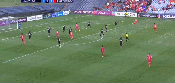 28’河内大脚传输送到三秒区内,抢十二码员头槌被对手毁坏出端线