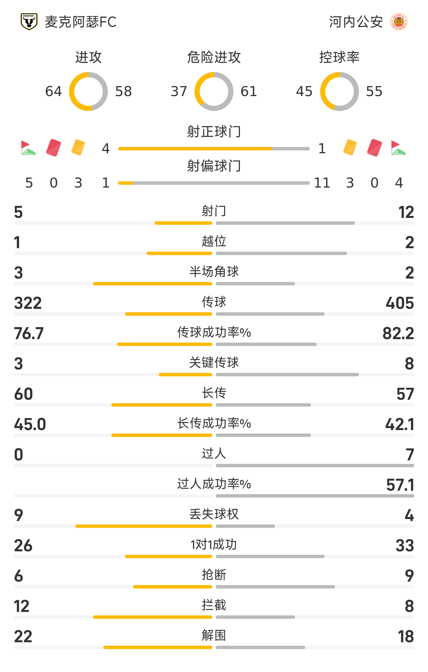 45’希纳前场断球形成单刀,守门员奋力救球拯救球队