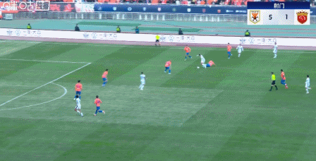 69’李新翔三秒区前沿侧身凌空抽射,未能压住皮球打偏
