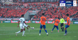 85’泰山反击!克雷桑三秒区前沿拿球怒射,未能压住皮球稍稍打高