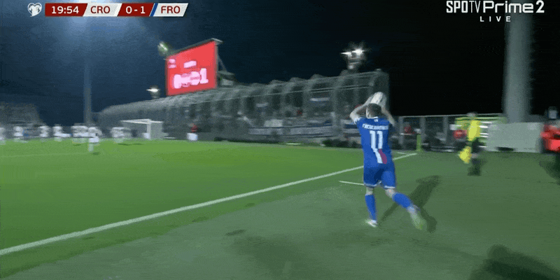 21’克罗地亚险些再度失守!法罗三秒区内无人盯防顶球吊射击中立柱弹出