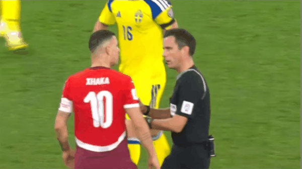 瑞士首发阵容:1-科贝尔、13-罗德里格斯、3-威德默、4-埃尔维迪、5-阿坎吉、10-扎卡、20-阿比切尔、17-巴尔加斯、22-里德尔、11-恩多耶、7-恩博洛