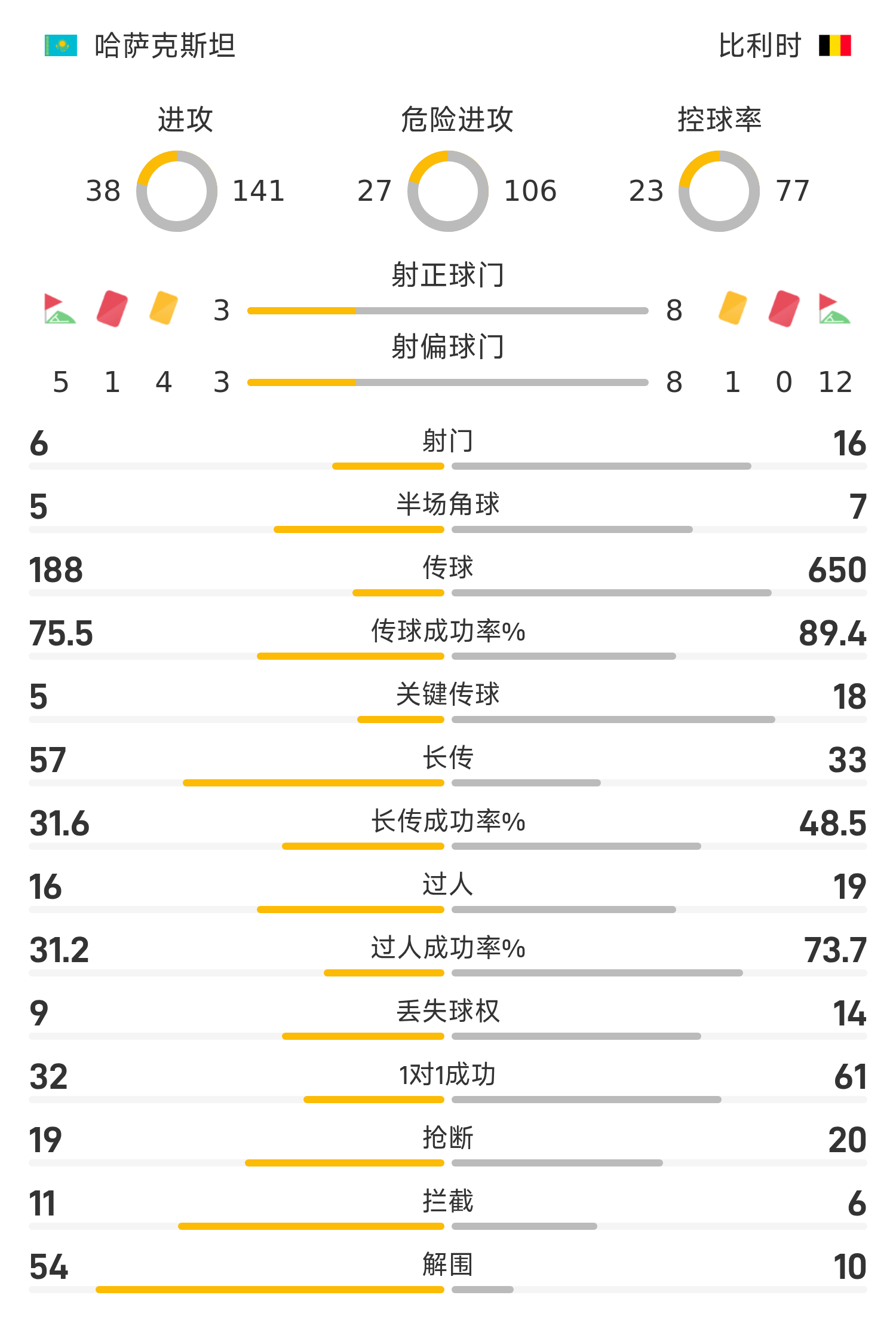 世欧预战报:比利时1-1十人哈萨克斯坦,无缘提前晋级