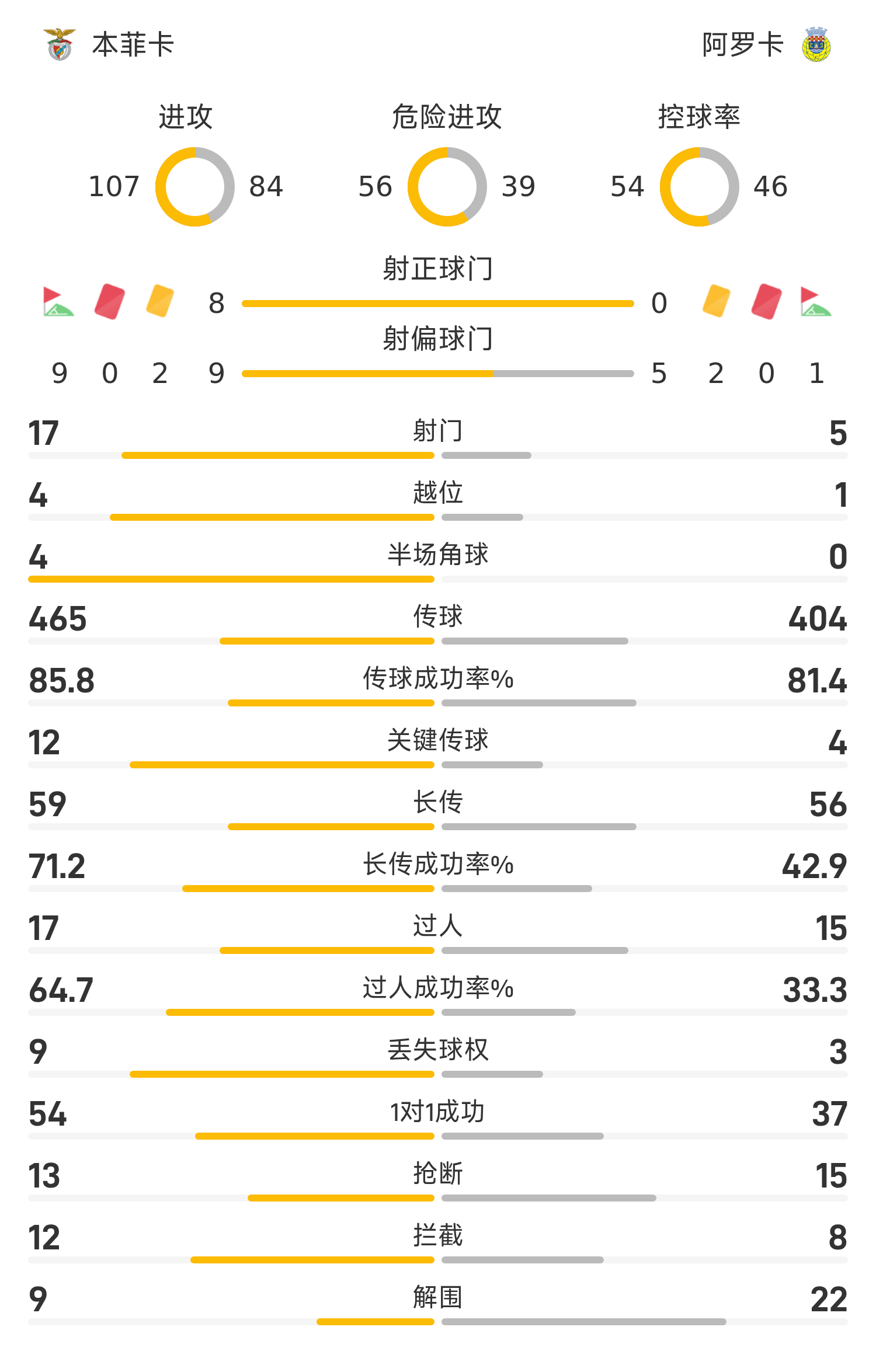 本菲卡首发阵容:1-特鲁宾、30-奥塔门迪、8-阿瑟斯、26-达尔、44-阿劳霍、11-卢克巴吉奥(77’90-利马)、10-苏达科夫(63’18-巴雷罗)、5-巴雷内切亚、20-里奥斯(67’84-雷戈)、25-普雷斯蒂安尼(63’21-施耶德鲁普)、14-帕夫利迪斯(77’9-伊万诺维奇)