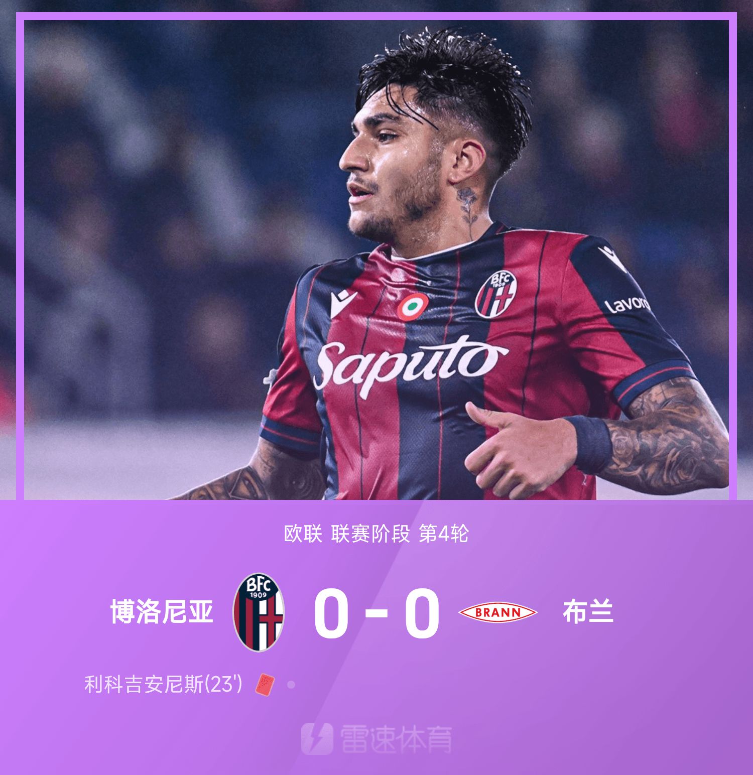 6686体育app11月07日讯 25/26赛季欧联联赛事阶段第4轮,博洛尼亚坐镇主队场对阵布兰。上半场竞赛利科吉安尼斯染红。全场竞赛,两支球队合计仅有3次打门命中门框范围,竞赛也十分沉闷。最终,十人作战的博洛尼亚在主队场0-0闷平布兰。