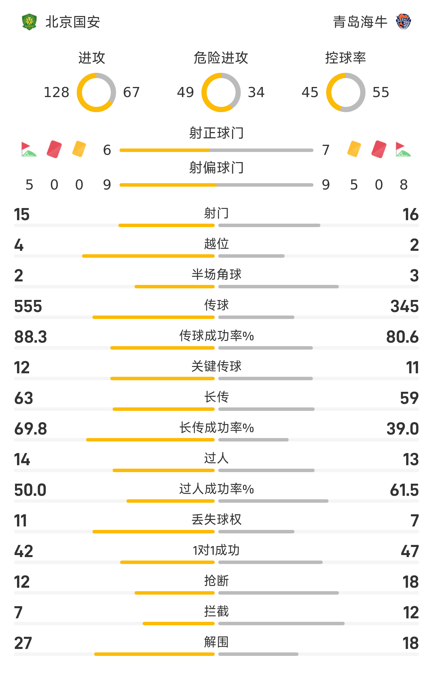 北京国安首发阵容:34-侯森、5-恩加德乌、4-李磊、3-何宇鹏(70’27-王刚)、2-吴少聪、7-塞尔吉尼奥(70’21-张源)、23-达万、8-古加(85’10-张稀哲)、29-法比奥(85’9-张玉宁)、37-曹永竞、17-杨立瑜(61’11-林良铭)